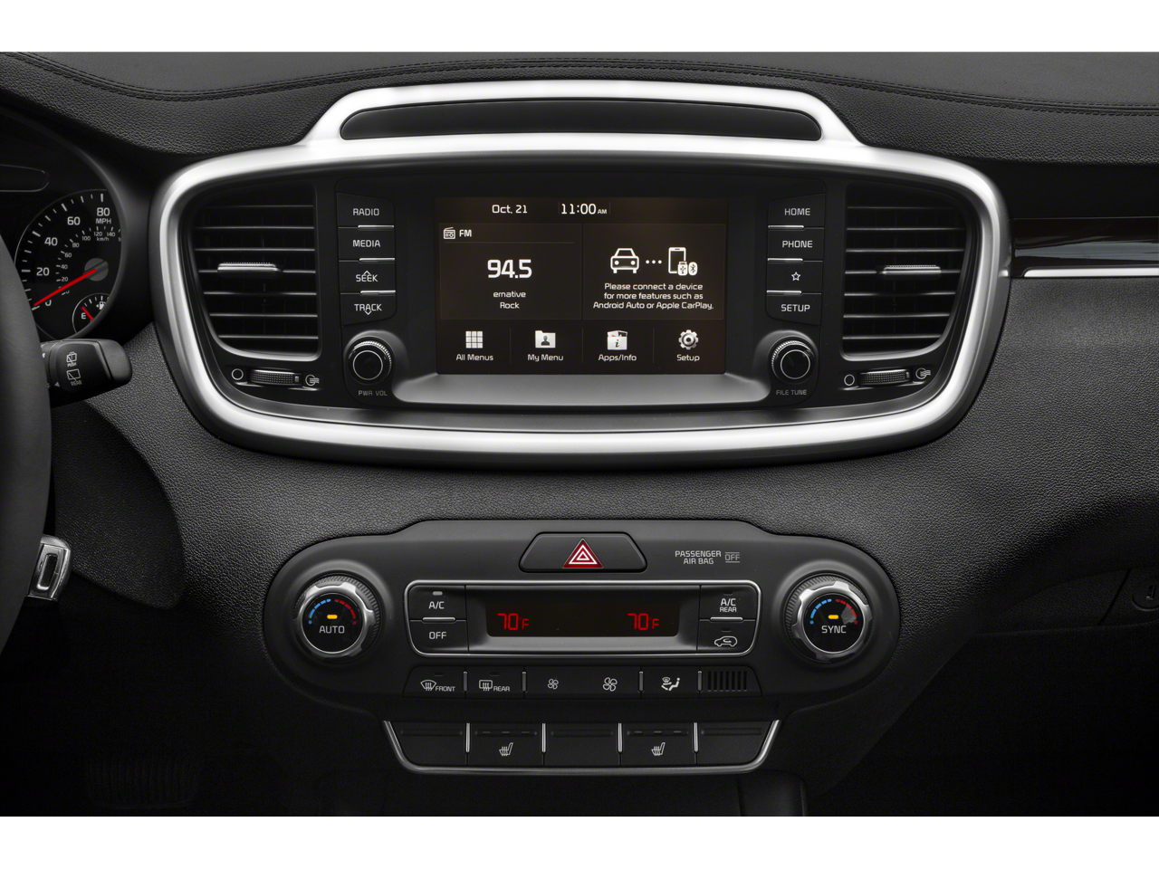 - Radio: AM/FM/MP3 Audio System -inc: 7" touch-screen color display, 6 speakers, support for Android Auto and Apple CarPlay, USB/auxiliary input jacks, 2 USB charging input jacks and Bluetooth® connectivity