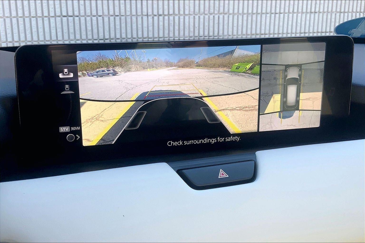- The vehicle is equipped with a camera that displays an image of the area behind the vehicle on an interior display.