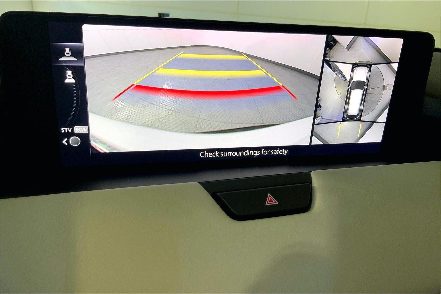 - The vehicle is equipped with a camera that displays an image of the area behind the vehicle on an interior display.