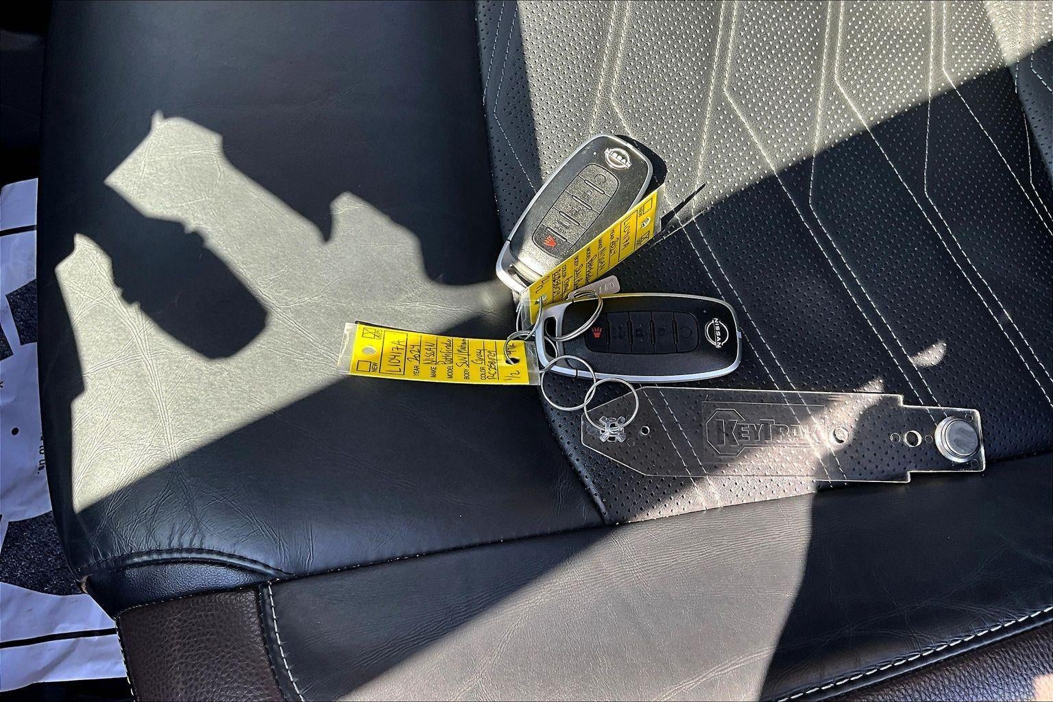 Power Liftgate Rear Cargo Access, Power Tilt/Telescoping Steering Column, Heated Leather Steering Wheel w/Auto Tilt-Away, NissanConnect Services Tracker System, NissanConnect w/Navigation & Services -inc: door to door connected navigation w/3D building graphics, satellite imagery, online POI search, online premium traffic information and SiriusXM Traffic and Travel Link w/weather, fuel prices, movie listings, stock info, sports and parking, Head-Up Display, Immobilizer, Side Impact Beams, Collision Mitigation-Front, Driver Monitoring-Alert, Blind Spot Intervention (BSI) / Blind Spot Warning (BSW) Blind Spot, Front And Rear Parking Sensors, Aerial View Camera System, Tire Pressure Monitoring System Tire Specific Low Tire Pressure Warning, Dual Stage Driver And Passenger Front Airbags, Curtain 1st, 2nd And 3rd Row Airbags, Airbag Occupancy Sensor, Back-Up Camera, Front Camera, Left Side Camera, Right Side Camera