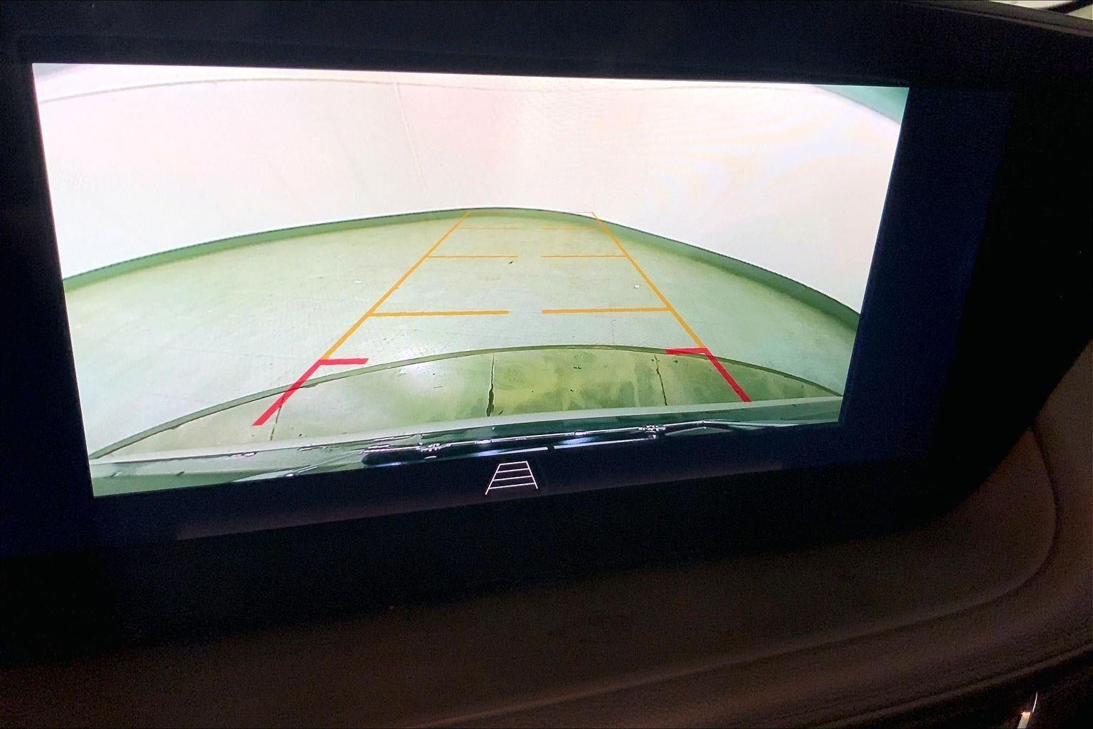 - The vehicle is equipped with a camera that displays an image of the area behind the vehicle on an interior display.
