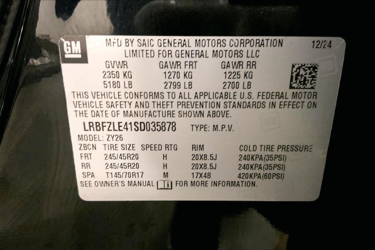 - Tires, P245/45R20 all-season