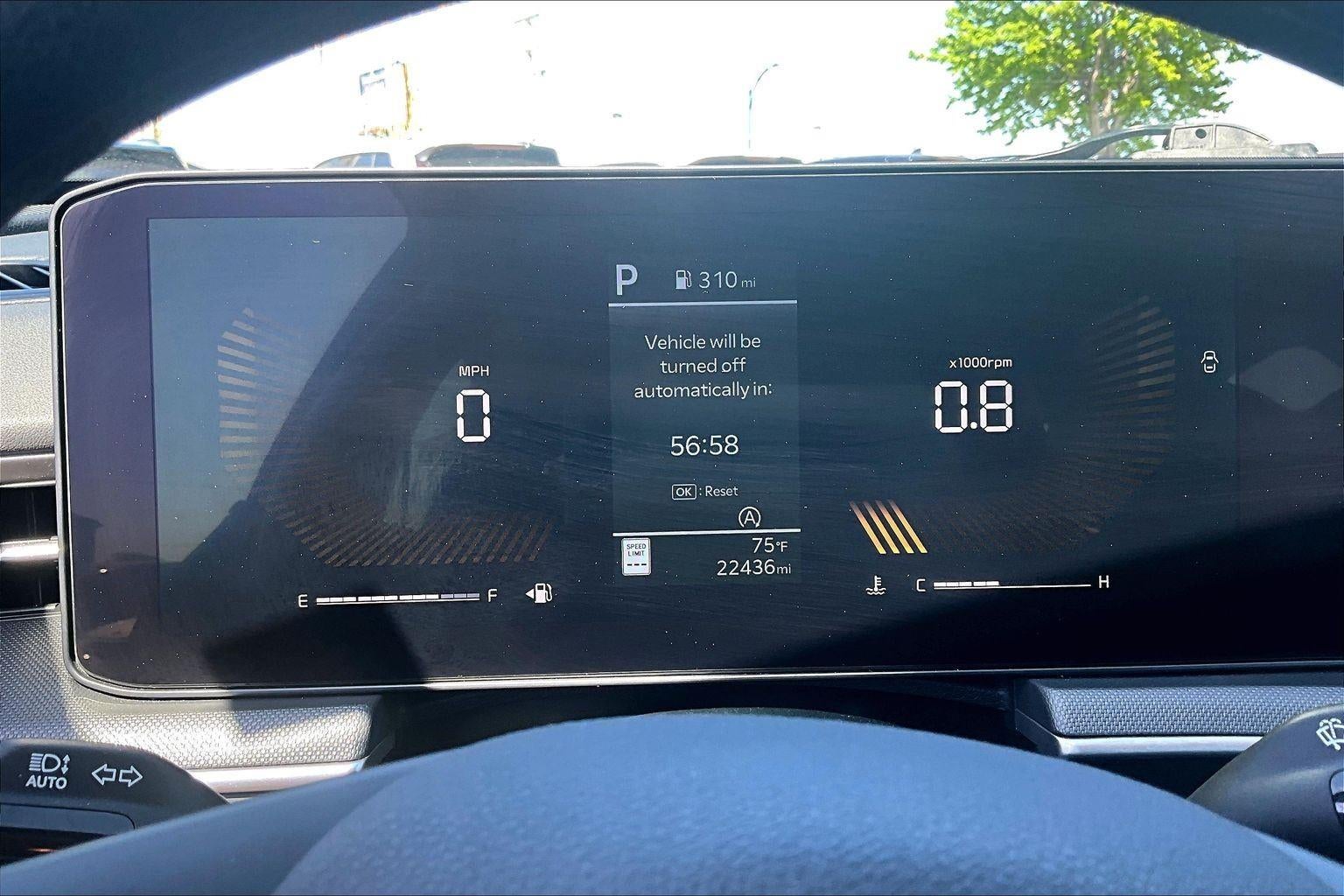 - The vehicle is equipped with a camera that displays an image of the area behind the vehicle on an interior display.