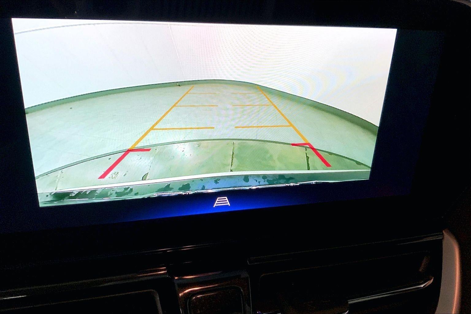 - The vehicle is equipped with a camera that displays an image of the area behind the vehicle on an interior display.